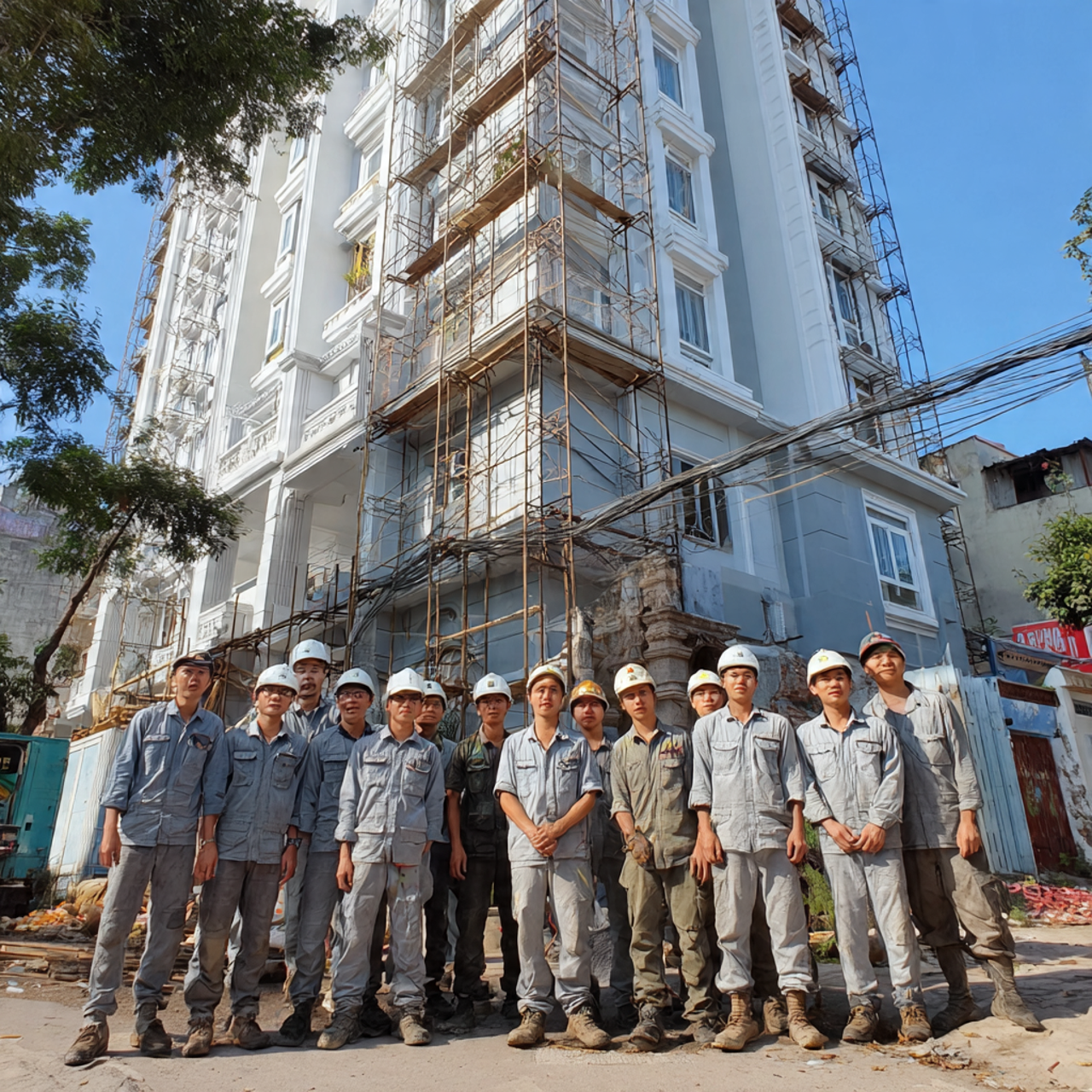 📸 Hình 1: Toàn cảnh đội ngũ Công Ty TNHH Thiết Kế Xây Dựng Sài Gòn Tower thi công sơn nhà cấp tốc tại TPHCM
