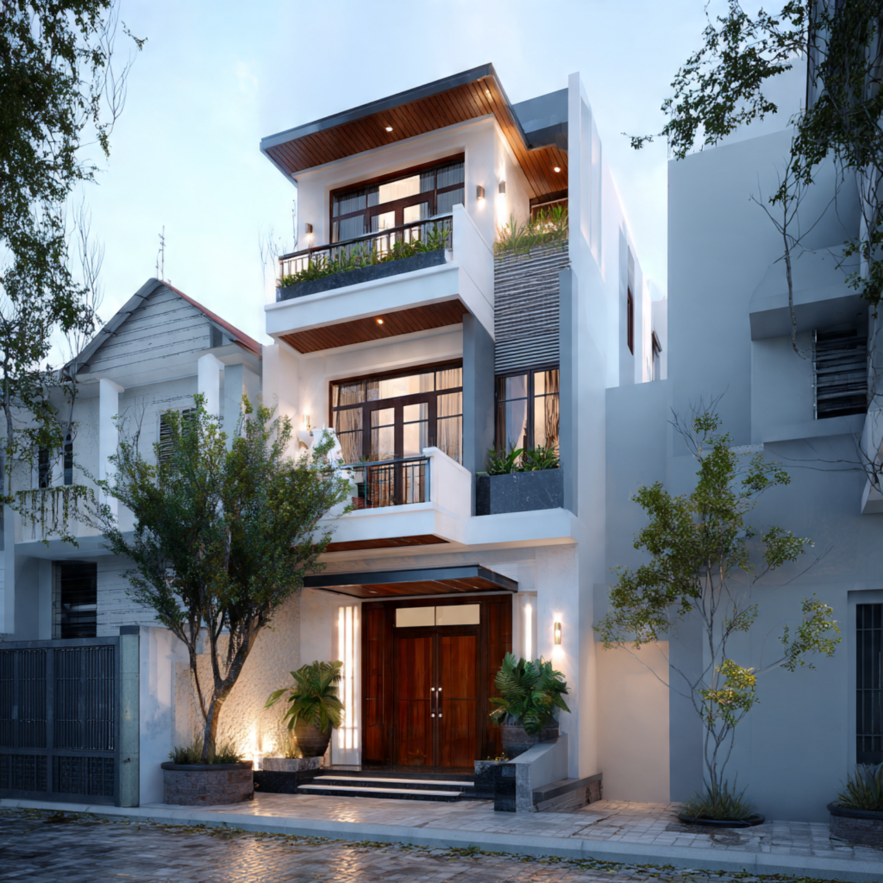 📷 Hình 5: Công trình biệt thự Quận 5 hoàn thiện với màu sơn sang trọng