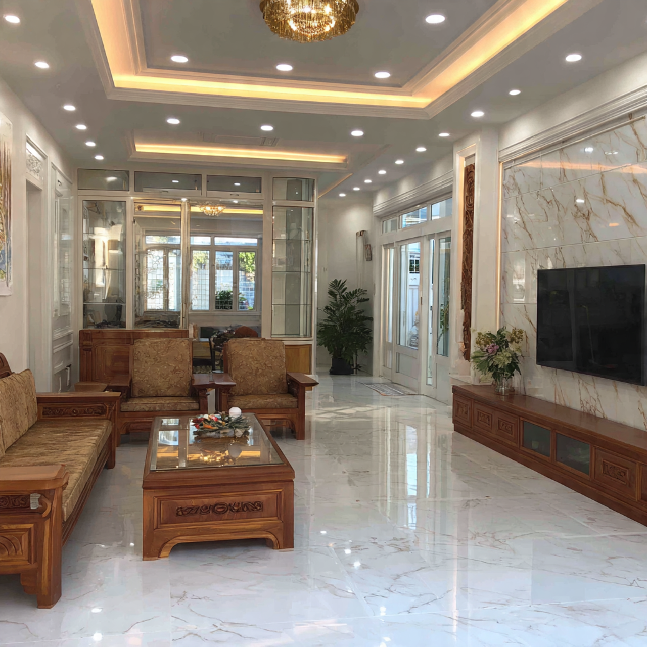 📸 Hình 2: Không gian phòng khách sang trọng tại Quận 7 sau khi được sơn hoàn thiện với gam màu sáng hiện đại.