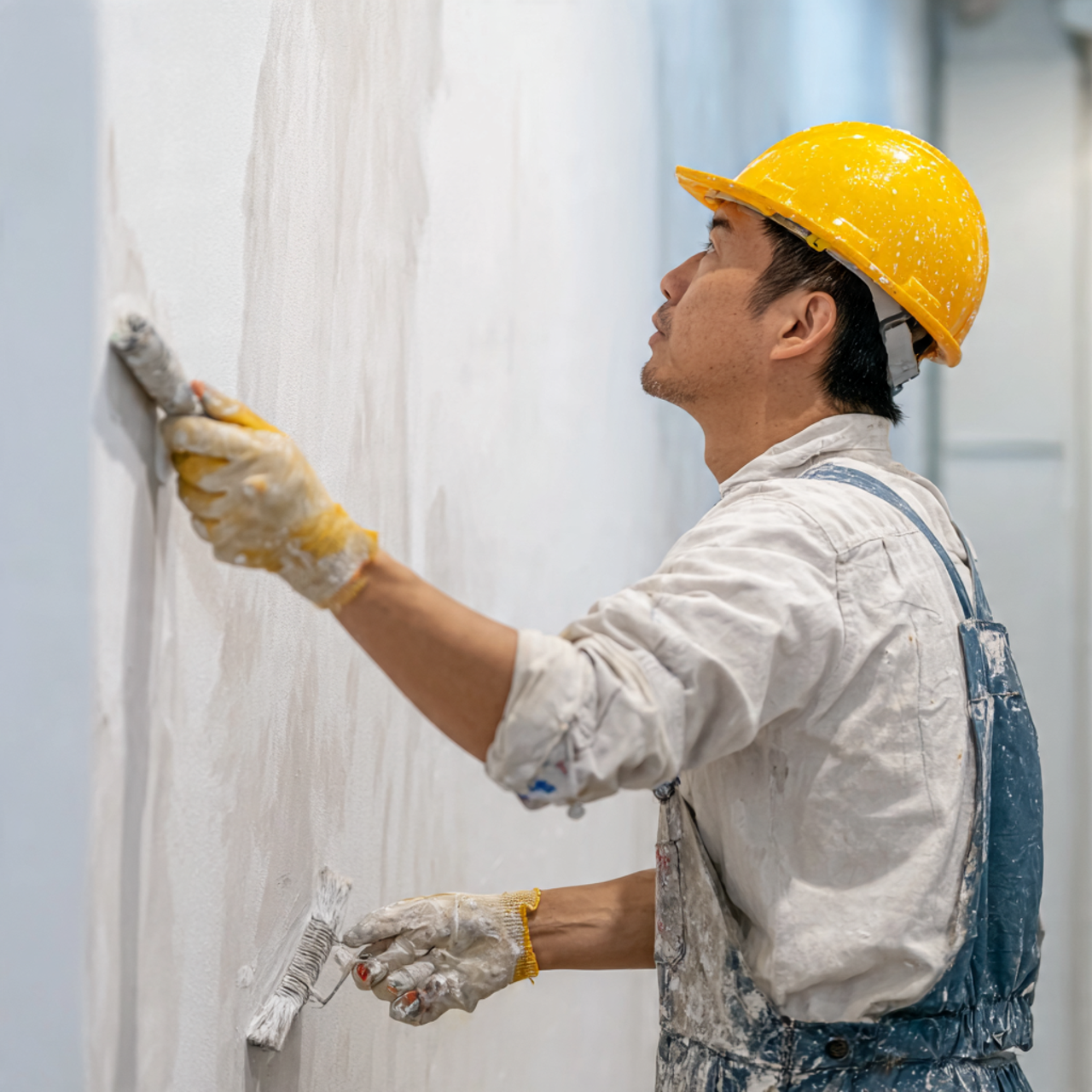📸 Hình 3: Thợ sơn đang xử lý bề mặt tường trước khi thi công lớp sơn mới