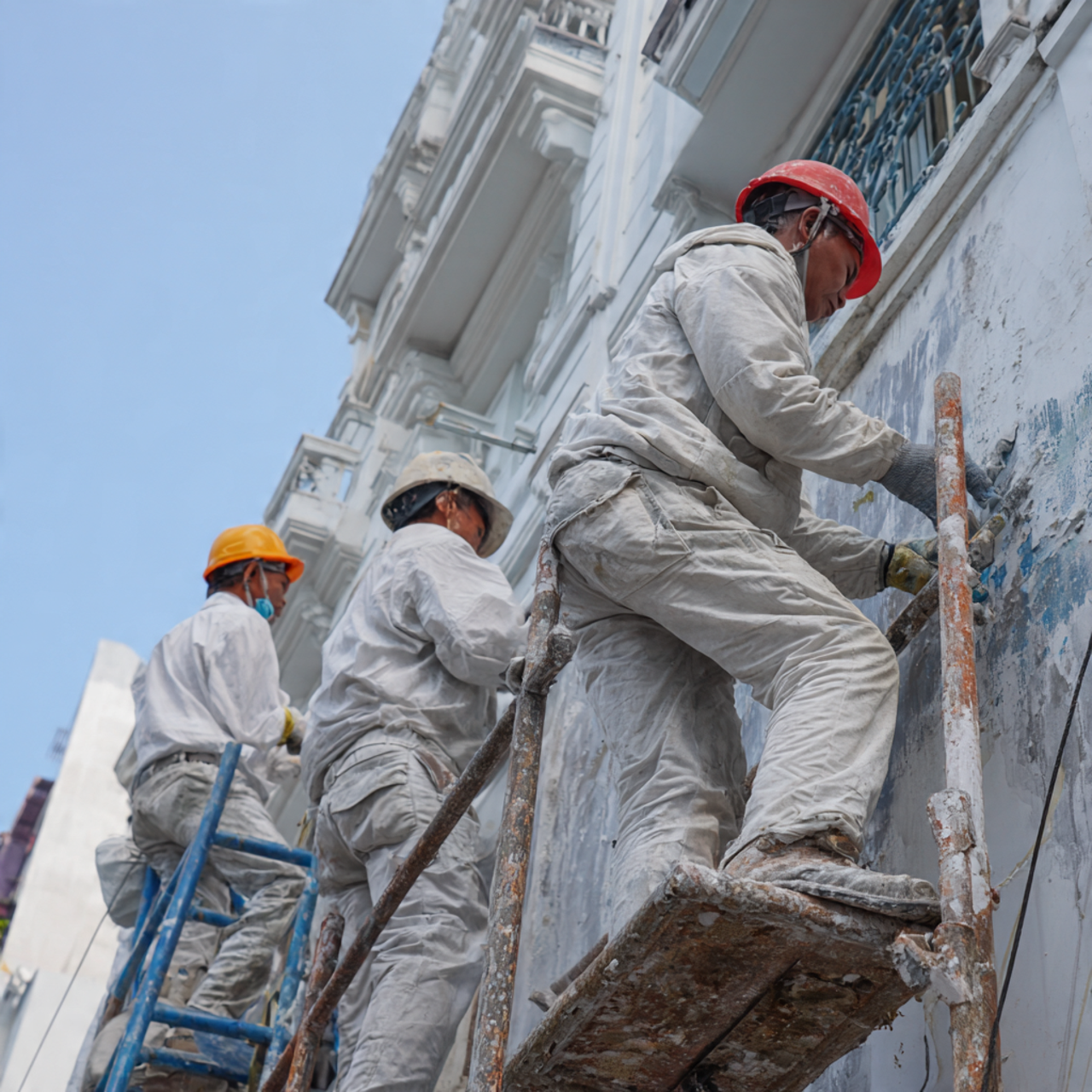 📷 Hình 5: Đội thợ thi công sơn nhà phố chuyên nghiệp của Sài Gòn Tower