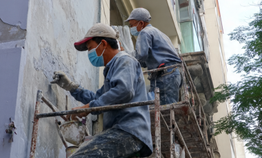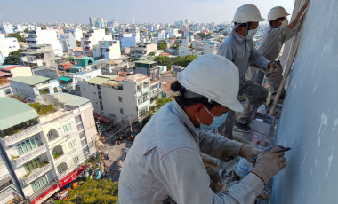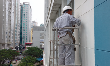 Hình 2: Thợ thi công sơn nhà chuyên nghiệp của Sài Gòn Tower đang tiến hành lăn sơn ngoại thất