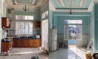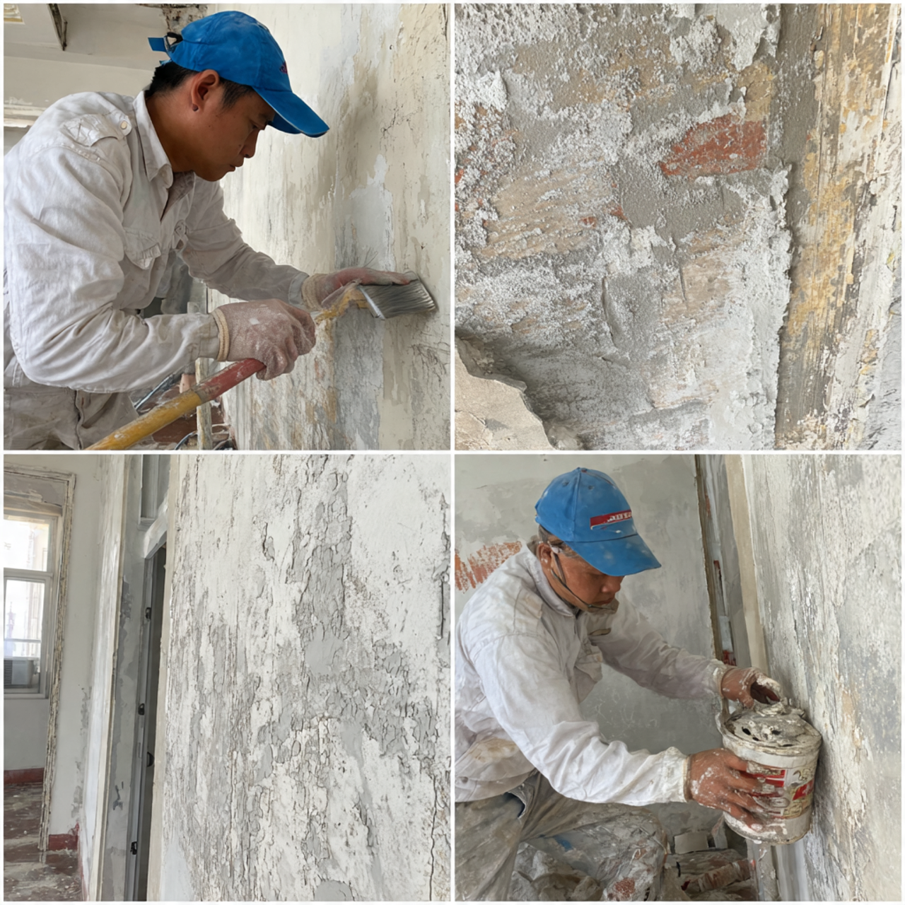 1. Khảo sát công trình: Đánh giá tình trạng tường, độ ẩm, nứt, bong tróc.