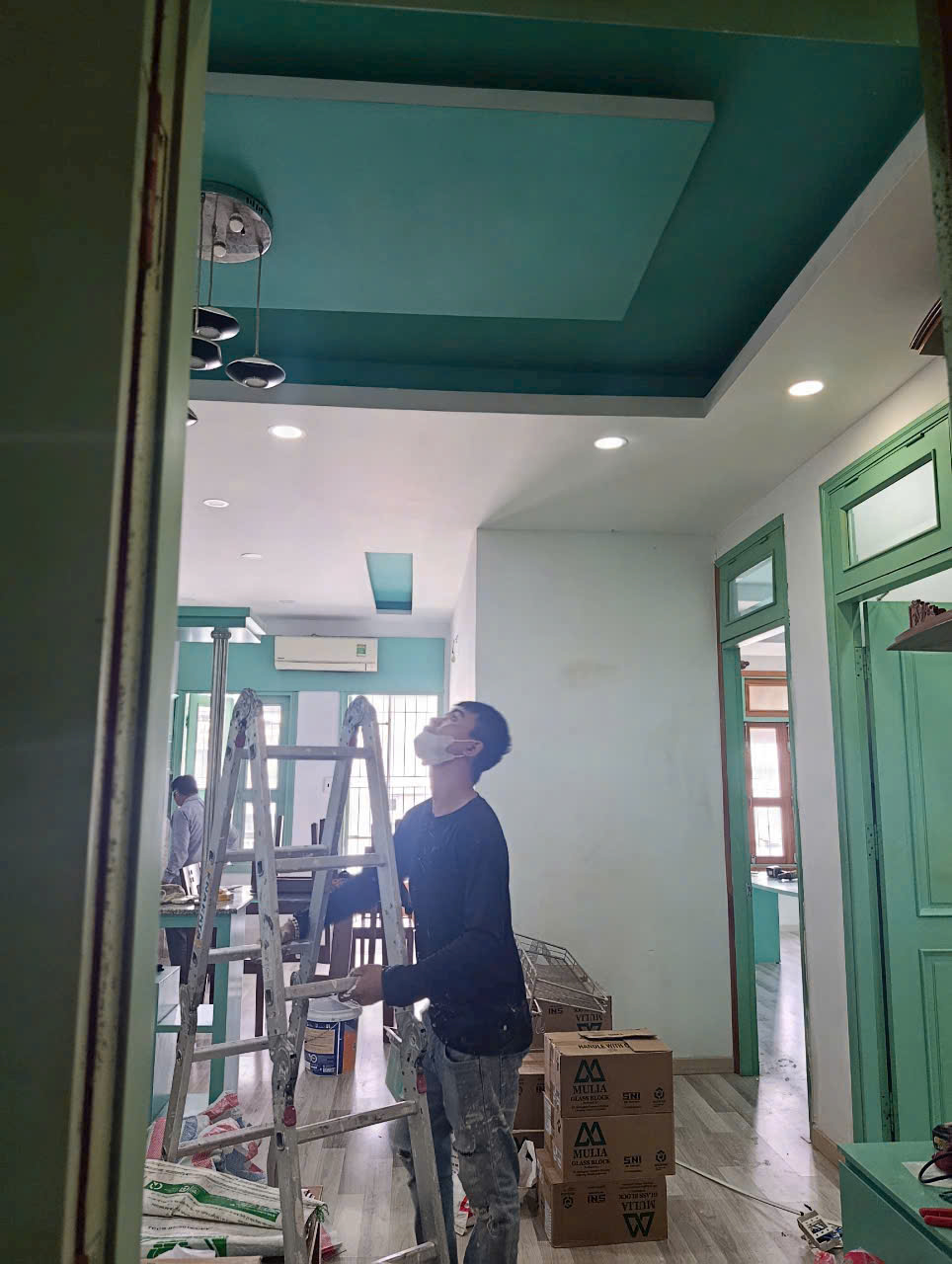 - Lắp cửa, tủ bếp, trần thạch cao.