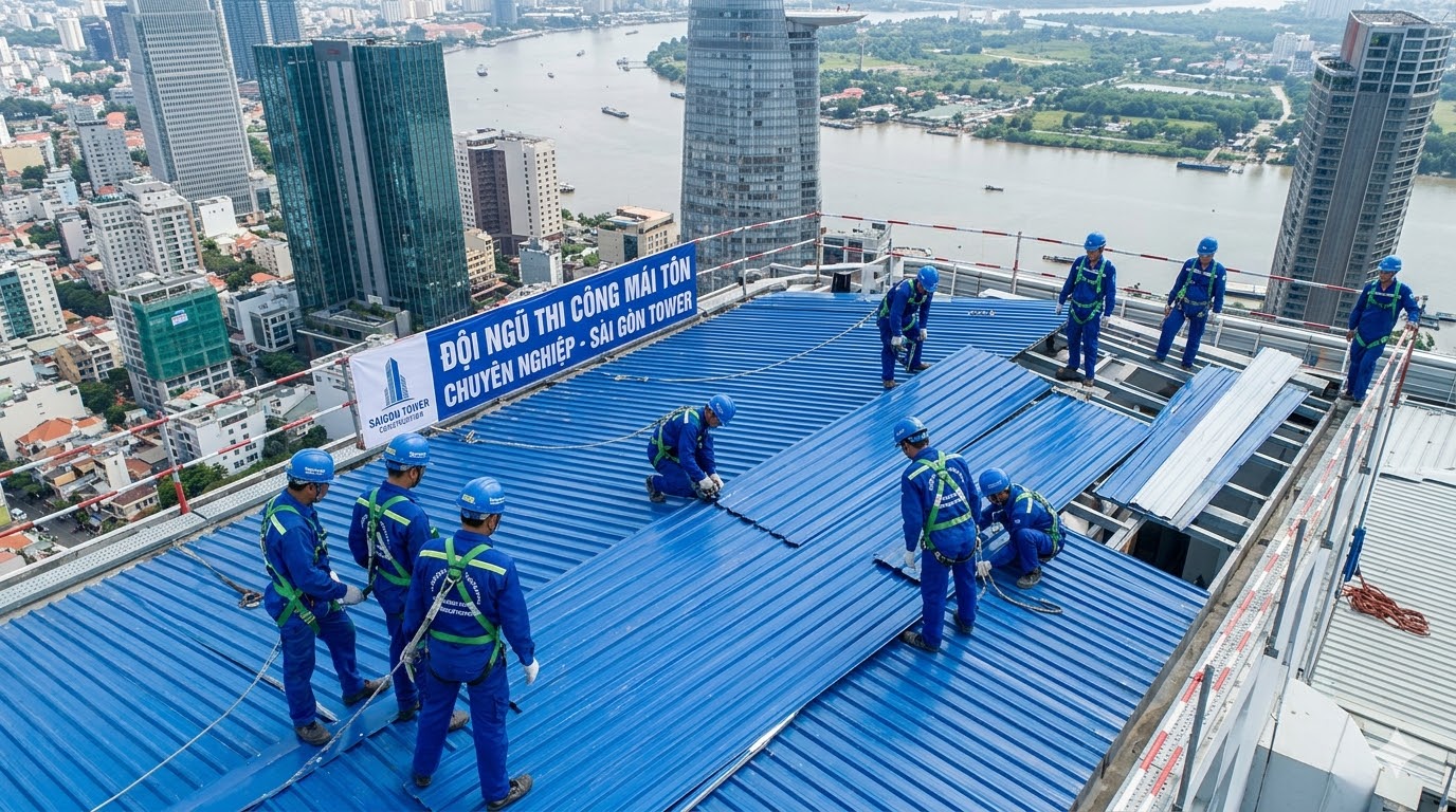 Hình 1: Đội ngũ thi công mái tôn chuyên nghiệp của Sài Gòn Tower