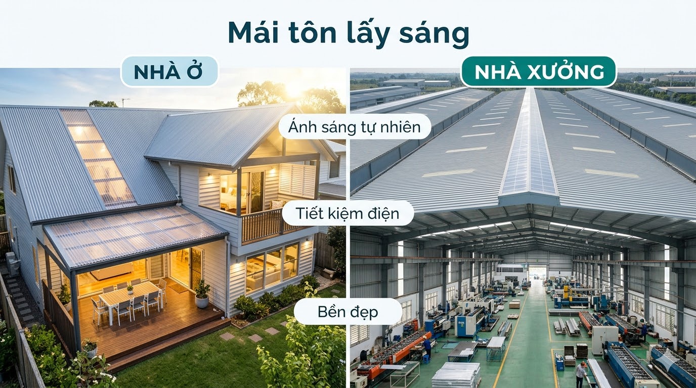 - Mái tôn lấy sáng: 450.000 – 750.000 VNĐ/m²
