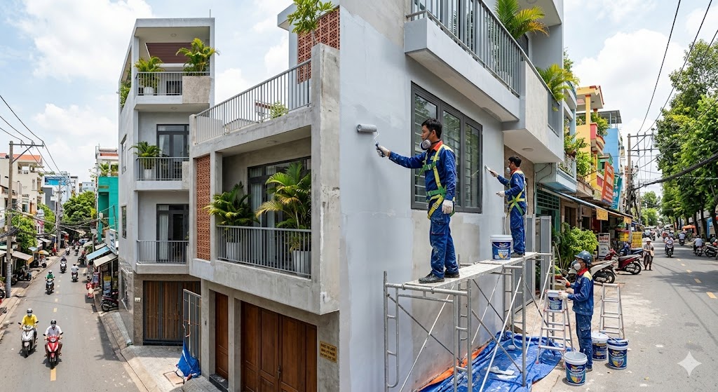 Hình 2: Thi công sơn ngoại thất nhà phố tại TP.HCM